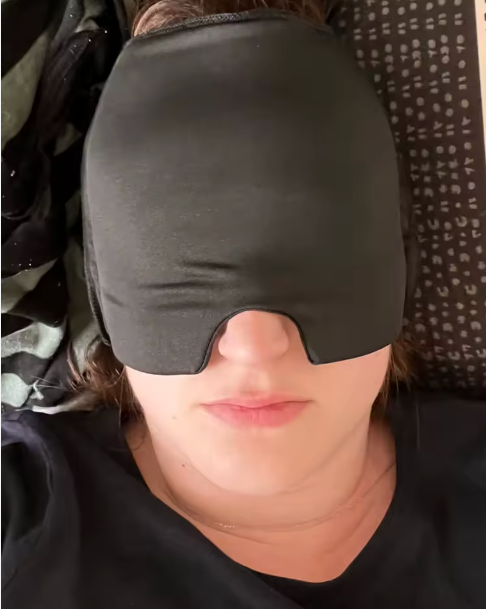 "It's so much better than balancing a clumsy ice pack on your head. The cap functions as a blackout mask, covering eyes to block out all light. It is incredibly soothing and comfortable enough to lie down and rest with it on." - Kimberly H