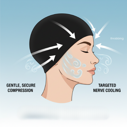 When pain is "pounding," you instinctively want to squeeze your head or apply pressure. This cap delivers that "right amount of pressure" and is like asking your partner to press on your forehead, providing instant relief. This is crucial for physical pain and pressure that medication often doesn't touch.